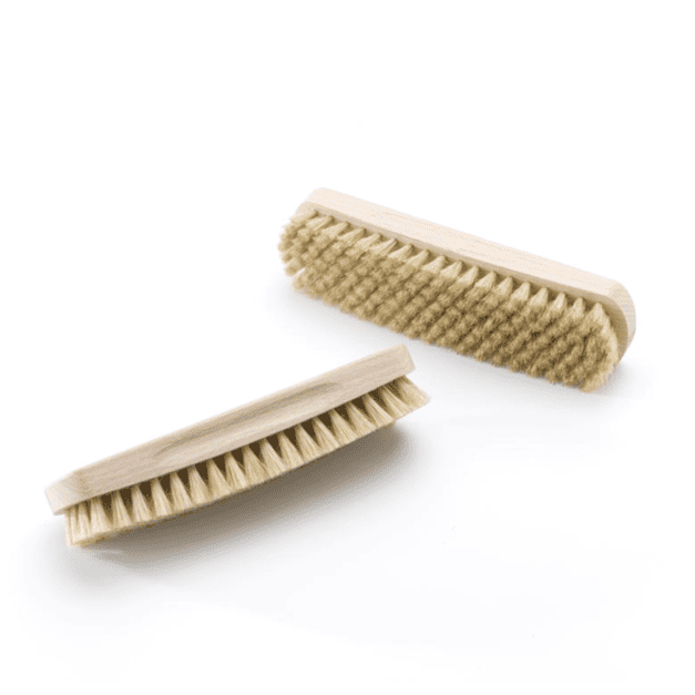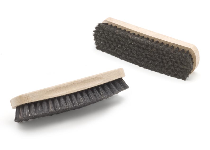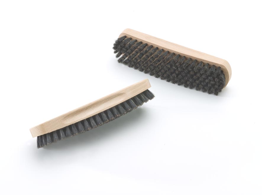 #11331/32 "Maxi Glanzbürste gewölbt", 185 x 49 x 17 mm, Holzkörper gewölbt, mit seitlichen Griffkehlen, unlackiert, mit Rosshaar schwarz oder braun/mixed, VE 10 Stück im Beutel, 17 x 10 Stück im Umkarton.