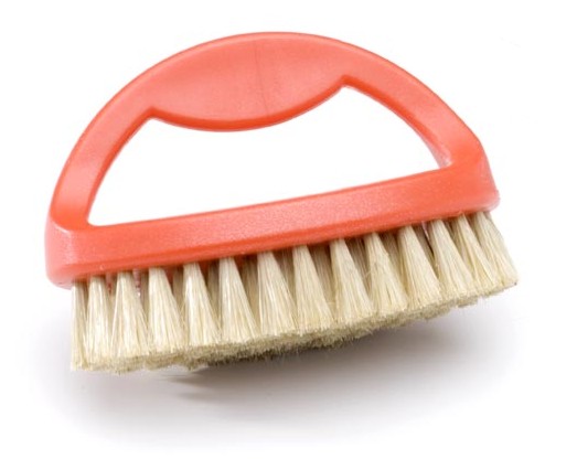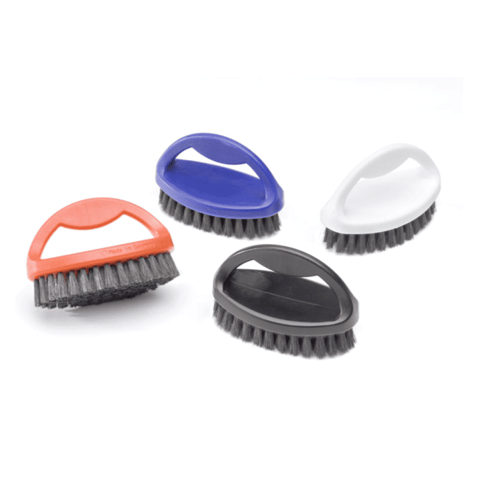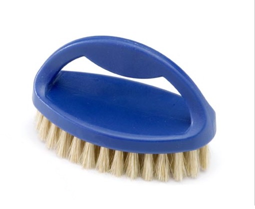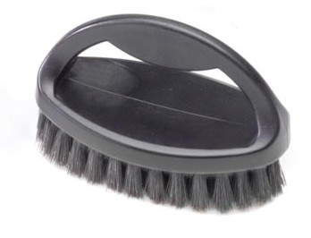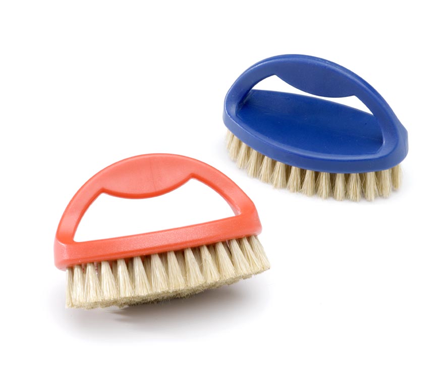 #11520/21, "Glanzbürste mit Griff Design", 100 x 50 x 48 mm, Kunststoffkörper, farblich sortiert, reine Naturborsten hell oder schwarz, VE 12 Stück im Beutel, 26 x 12 Stück im Umkarton.