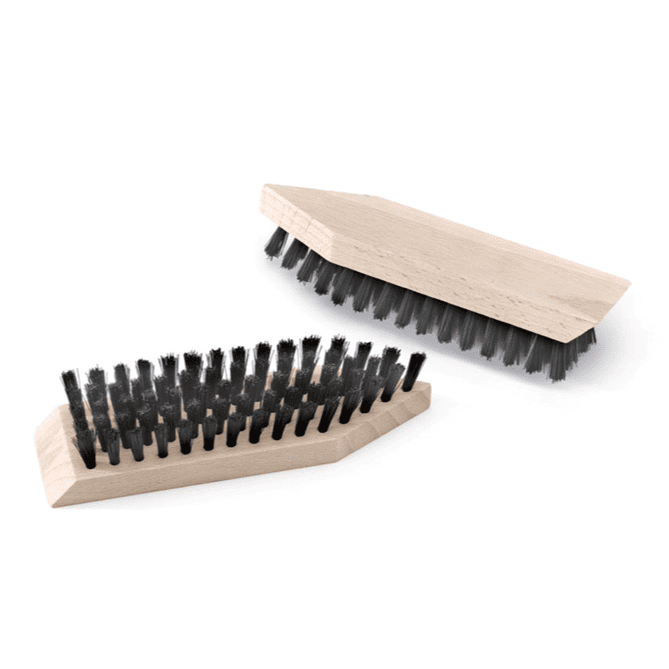 #24007 "Schmutzbrüste aus Holz", 163 x 43 x 14 mm, Holzkörper mit Spitze und Schräge, unlackiert, mit kräftiger synthetischer Borste, glatt, schwarz, VE 10 Stück im Beutel, 20 x 10 Stück im Umkarton.