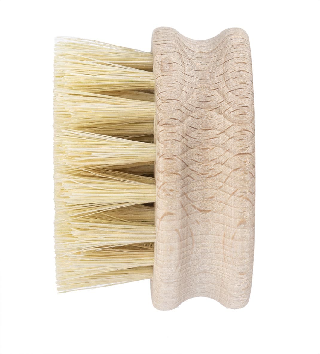 Form:      Runder Holzkörper mit Griffkehlen, rundherum abgerundet, Naturholz
