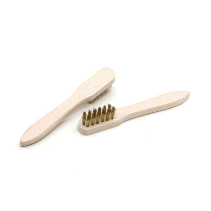 #32350 "Messingbürste" 150 x 21 x 11 mm, Holzkörper mit abgerundetem Stiel, unlackiert, mit Messingdrahtbesteckung, VE 12 Stück im Karton, 50 x 12 Stück im Umkarton.