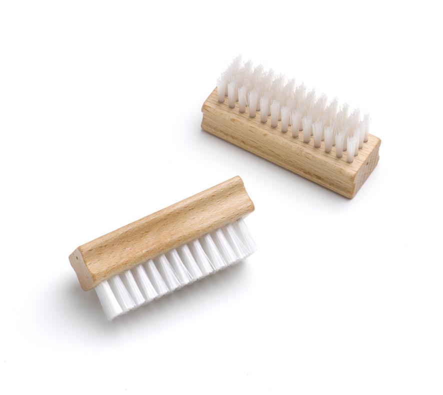 #14506 "Wildlederbürste", 75 x 26 x 16 mm, Holzkörper mit seitlichen Griffkehlen, farblos lackiert, mit synthetischen Borsten, transparent, VE 12 Stück im Beutel, 20 x 12 Stück im Umkarton.