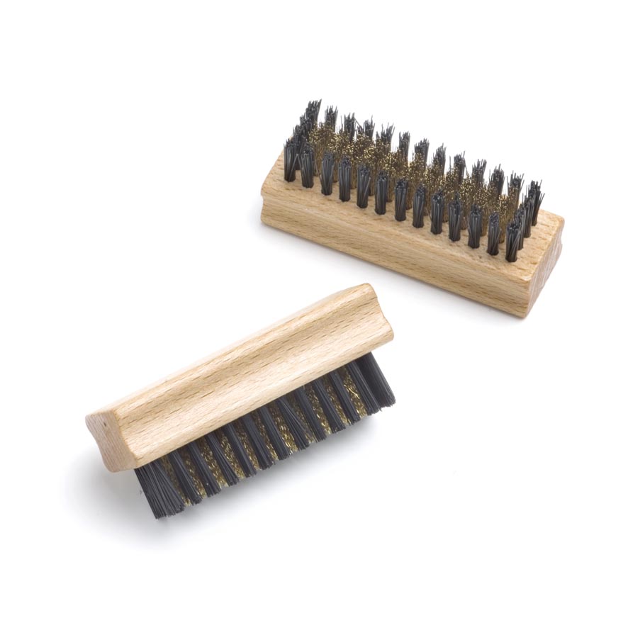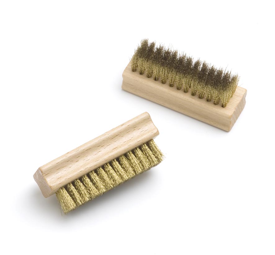 #14550 "Wildlederbürste", 75 x 26 x 16 mm, Holzkörper mit seitlichen Griffkehlen, farblos lackiert, mit Messingdraht Besteckung, VE 12 Stück im Beutel, 20 x 12 Stück im Umkarton.