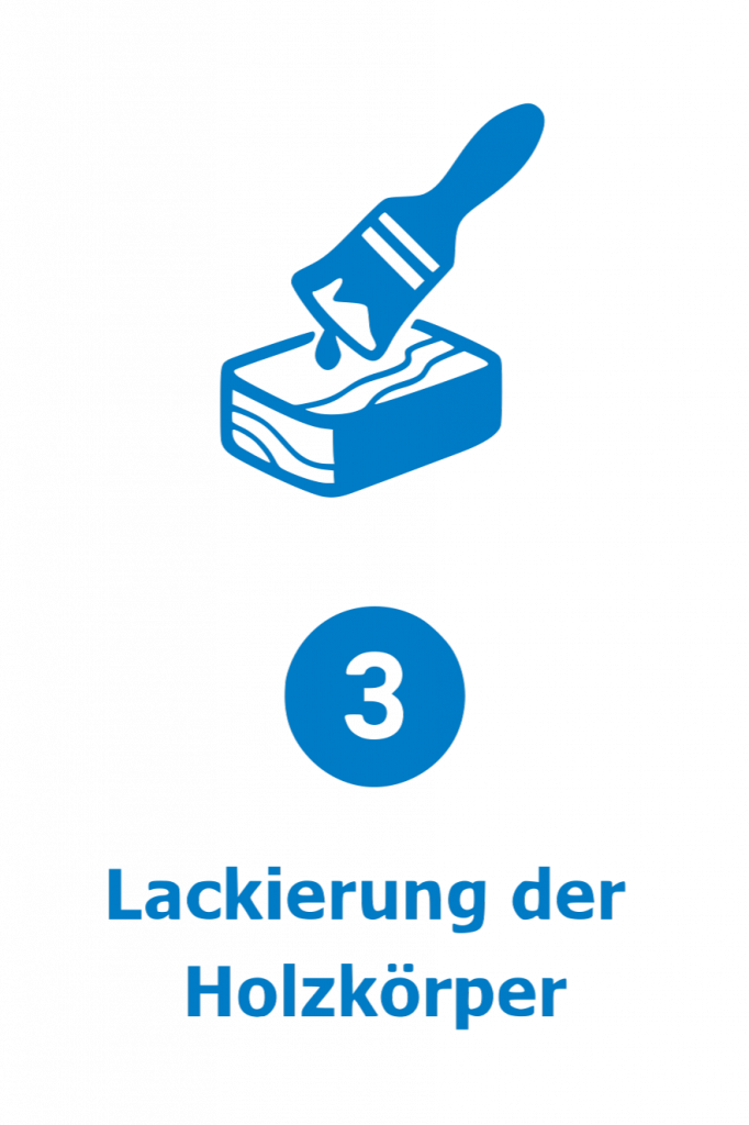 Nach der Fertigung der Holzkörper bieten wir die Möglichkeit, diese ganz nach Kundenwunsch farblich zu veredeln. In unserem Lackierbereich werden die Hölzer mit hochwertigen Lacken in verschiedenen Farbtönen versehen, für ein ansprechendes Erscheinungsbild und zusätzlichen Oberflächenschutz.