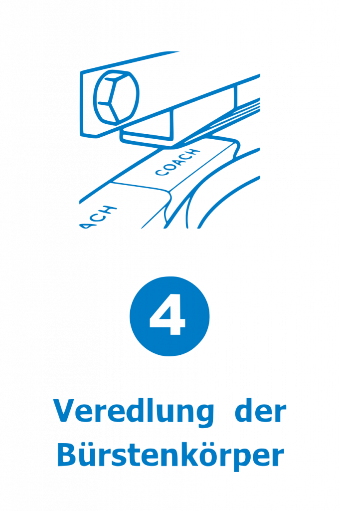 In unsere hauseigenen Veredlungsabteilung bringen wir Ihre Marke direkt auf das Produkt. Unsere Bürsten erhalten auf Wunsch eine individuelle Veredlung, sei es zu Werbezwecken, zur Markierung oder für ein einheitliches Erscheinungsbild. Dabei stehen verschiedene Verfahren zur Auswahl: