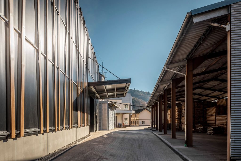 Die gemeinsame Vision war ein Gebäude in einem Design, passend zum Standort und der Bürstenproduktion, zu schaffen. Das architektonische Konzept der Fassade unserer neuen Logistikhalle sollte vor allem zwei Dinge widerspiegeln: Die Leidenschaft zum Produkt und die Liebe zum Schwarzwald. So können die stabförmigen Designelemente, die an der Außenseite in die Höhe streben, sowohl als Borsten als auch als Bäume interpretiert werden.